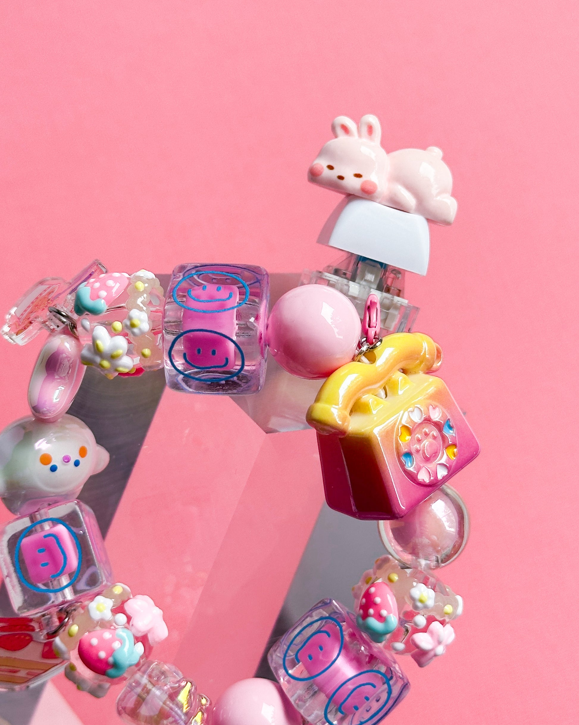 Due to the tariff situation, there could be moments when shipment for my top-of-keycap flat back cabochons could be prolonged or rejected at customs. Because of this, many of my bracelets are being created with just the keycap itself but still come in a huge range of cute colors. Nothing but the key cap decor is altered ♥️ If you have any questions, please feel free to message me!!